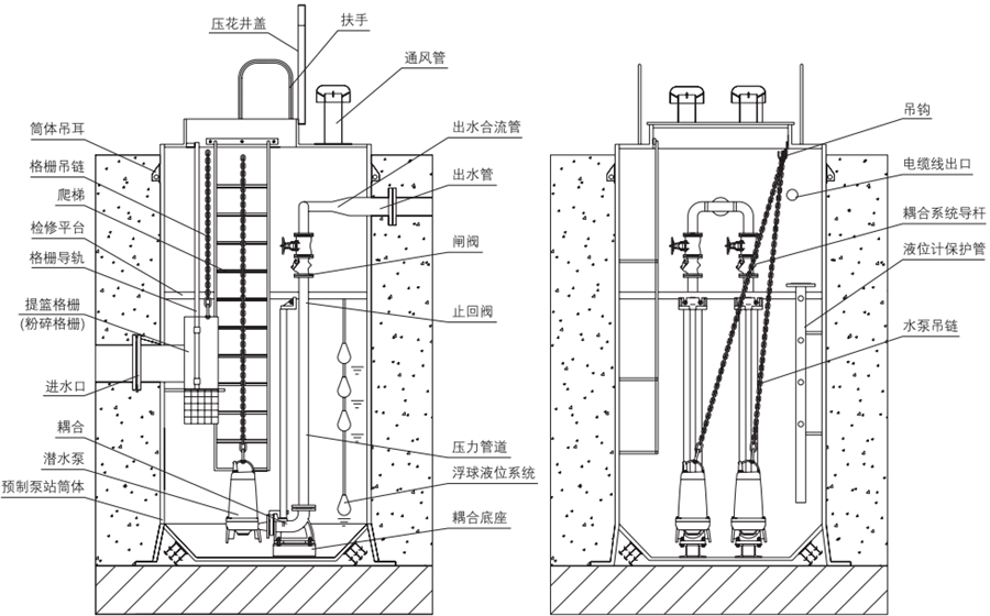 泵站系列產品具有工期短,安裝方便、體積小、效率高、智能化網絡化等現代產品特點。與傳統泵站相比土建工程量少,投資可減少一半以上。產品質量可靠,是傳統混凝上污水提升泵站的替代品。